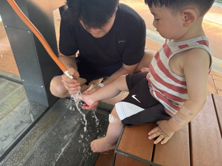 아이도 발 담그면서 너무 좋아하고, 더운 날엔 그 자리에서 땀 식히며 한참을 앉아 있게 되더라고요. 물놀이 대신 하기에도 최고!